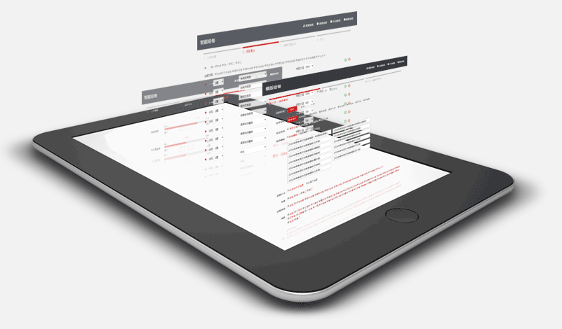 海量试题多维标引,大数据组卷,智能双向细目表,多种参数设置,三步成卷